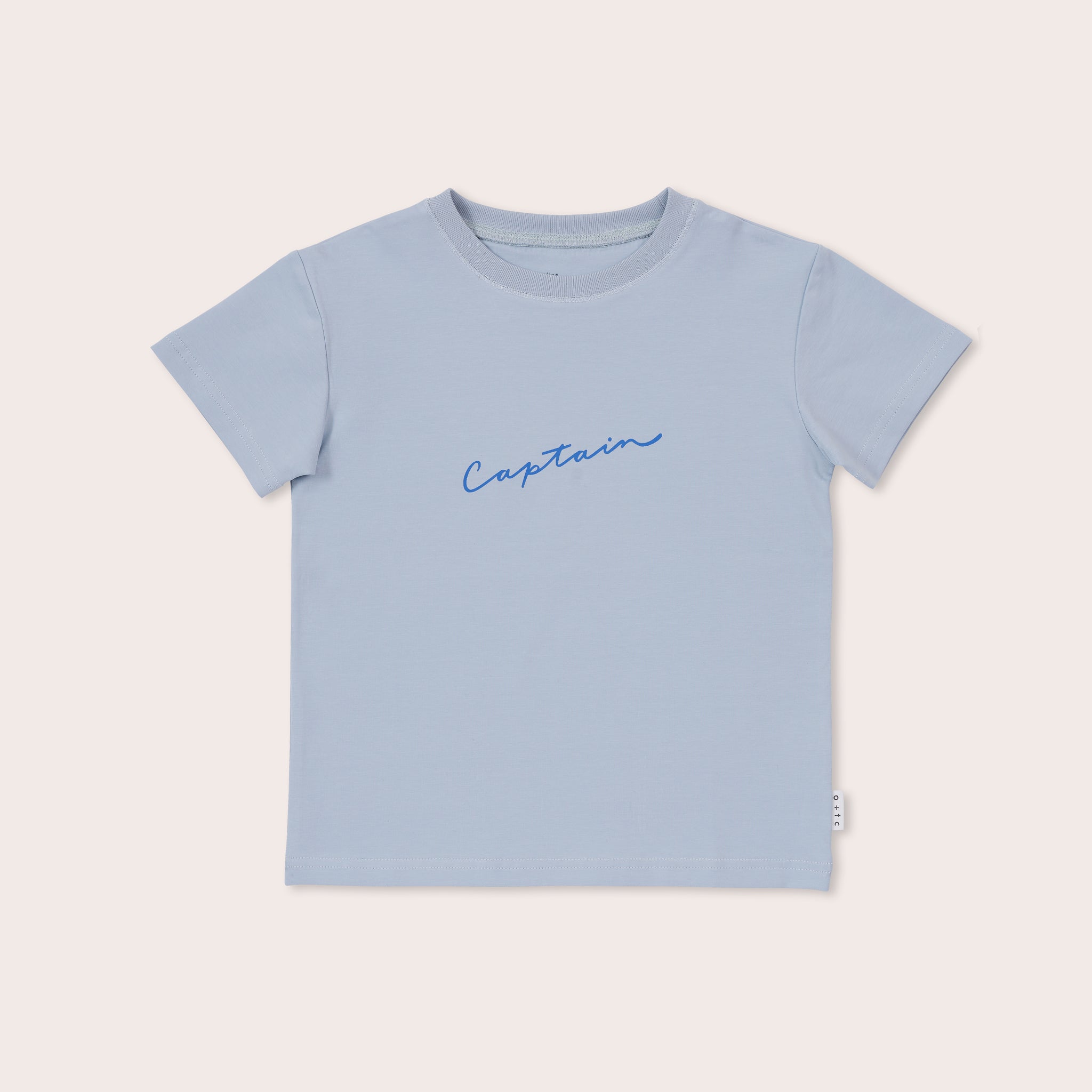 Our signature everyday tee- a relaxed classic cut tee in the perfect shade of blue, made for everyday wear with our signature handwritten 'captain' print in bold blue.